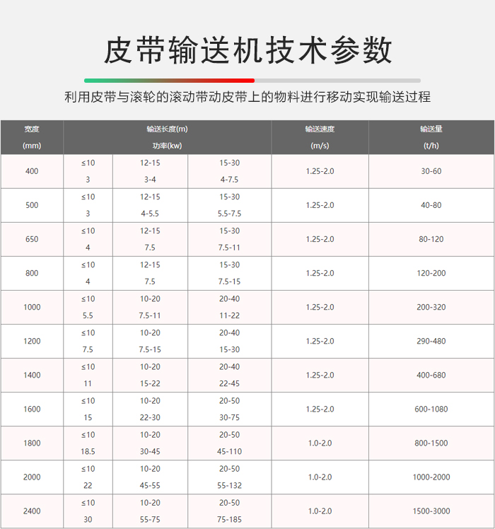皮带输送机是输送行业中比较早出现的输送设备之一,所以大家可能也比较了解该产品:主要是利用皮带与滚轮的滚动带动皮带上的物料进行移动,从而实现较为简单的物料输送过程。